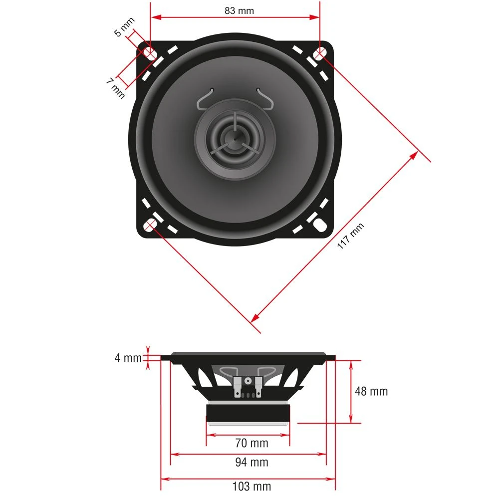 AMPIRE Koaxial-Lautsprecher 10cm mit 16mm Seidenkalotte, ohne Gitter (Paar)