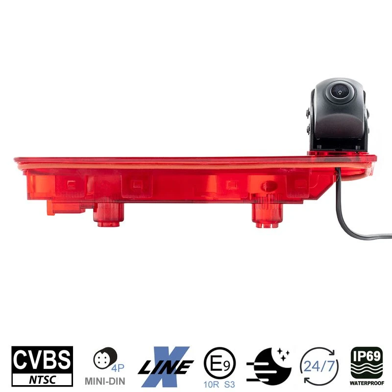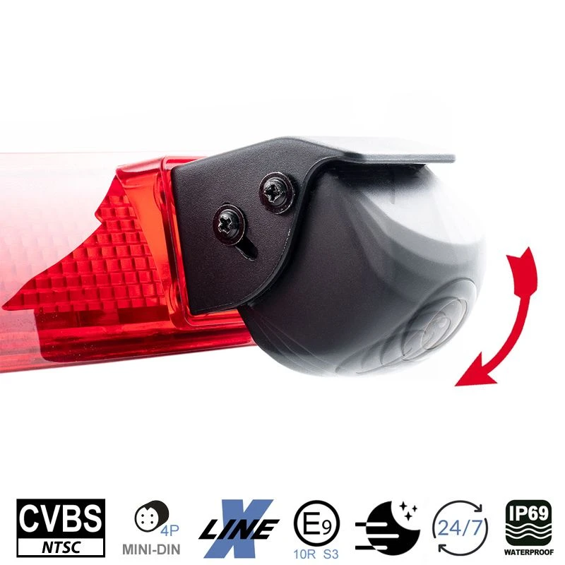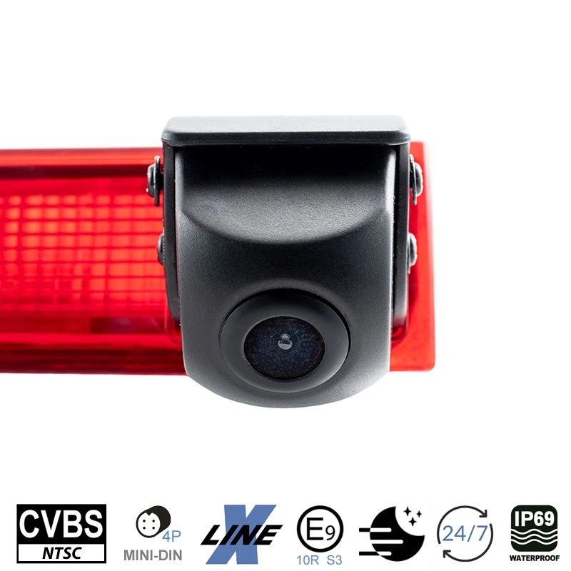 Fahrzeugspezifische CVBS (NTSC) Rückfahrkamera für den VW Transporter T5, T6 und T6.1 bis Modelljahr 2021 mit Flügeltüren.