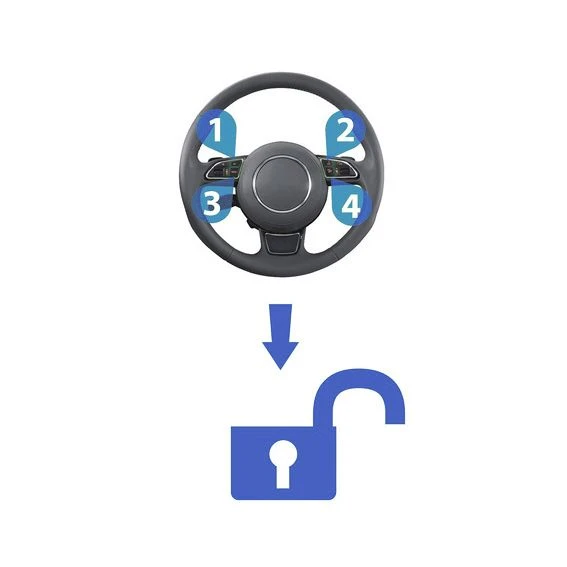 - 1 bis 15 stelliger PIN Code über von der Software unterstützten Tasten im Lenkrad oder Armaturenbrett