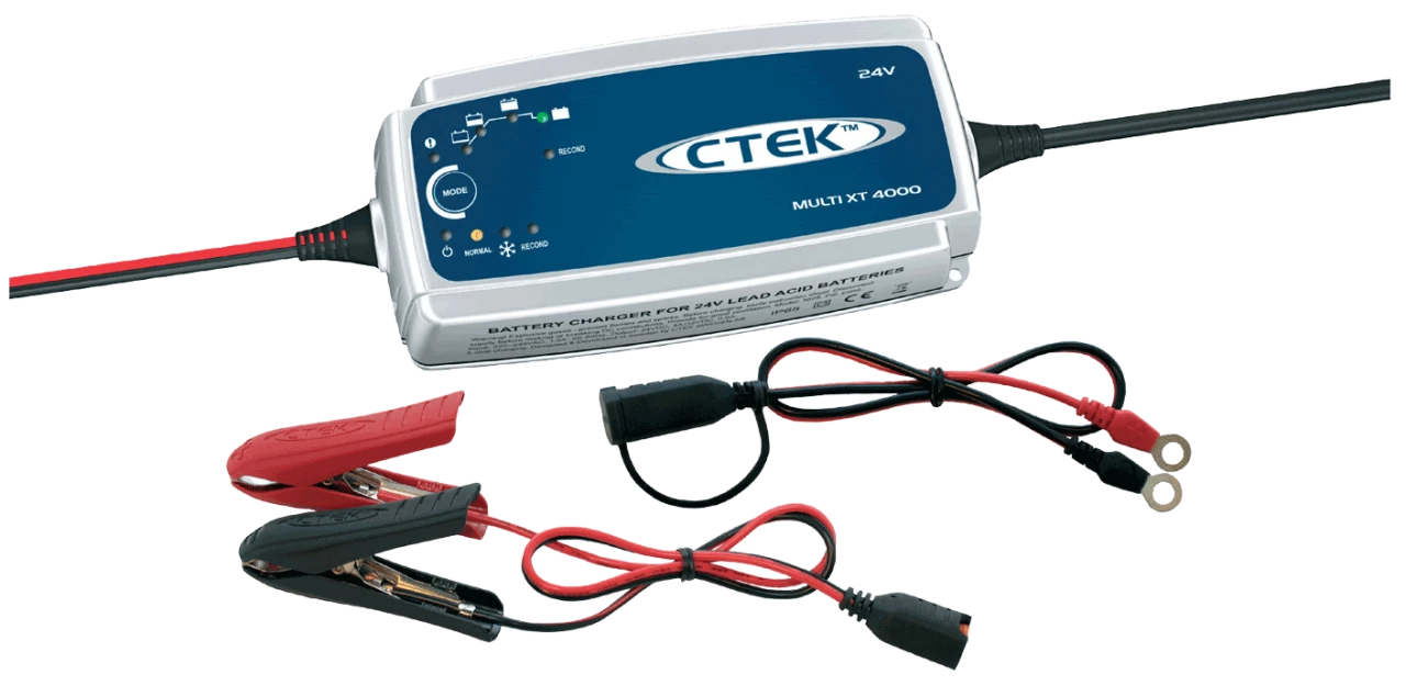 Das MXT 4.0 ist ein vollautomatisches 8-Stufen-Ladegerät mit einem Ladestrom von 4A für 24V-Batterien von 8 – 100Ah sowie für die Wartungsladung von bis zu 250Ah. Das Ladegerät hat die Schutzart IP 65 (geschützt gegen Staub und Spritzwasser) und ist kompatibel zu Fahrzeugelektroniksystemen. Es ist funkengeschützt, verpolungs- und kurzschlusssicher. Das MXT 4.0 wird es mit einer Garantie von 2 Jahren geliefert.
