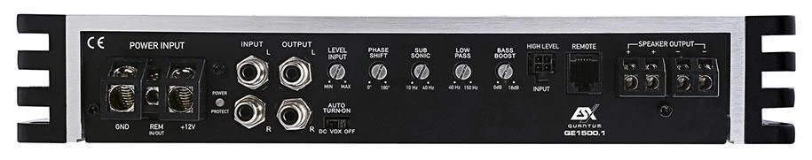 Die neu entwickelte ESX QUANTUM QE Serie ist eine Klasse für sich. Herkömmliche Digital-Verstärker mit hoher Leistung verursachen fast immer Interferenzen im Fahrzeug und stören den Radioempfang. Nicht so bei den neuen QE-Modellen: Bereits in der Entwicklungszeit wurde ein besonderes Augenmerk darauf gelegt, eine emissionsfreie Wiedergabe zu erreichen. Auch der Sound stimmt, denn hochwertige Bauteile garantieren ein audiophiles Klangerlebnis der Extraklasse. Optisch orientieren sich die fünf neuen, top ausgestatteten Flaggschiffe an den QUANTUM QE DSP Verstärkern mit integriertem DSP und ermöglichen somit vielseitige Kombinationsmöglichkeiten. Die Ausstattung kann sich ebenfalls sehen lassen: Auto Turn-On, EPS, variabel einsetzbare Filter – alles was das Herz begehrt ist an Bord. Hochwertige Anschlüsse und verschraubte Cinchbuchsen ergänzen den perfekten Auftritt. Alle Verstärker werden mit einer raffinierten Pegelfernbedienung ausgeliefert, die sich mit oder ohne Gehäuse sehr platzsparend installieren lässt.