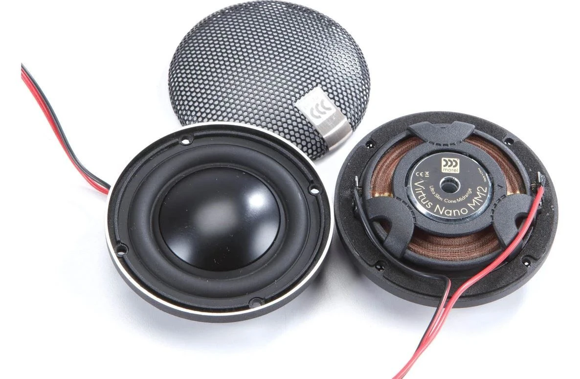 Das MOREL VIRTUS NANO CARBON 63 6.5″ (16,5cm) 3-Wege Kompo lautsprecherset macht seinem Namen Nano alle Ehre. Die Virtus Nano System sind mit den ultradünnen Virtus Nano-Treibern mit einer Einbautiefe von weniger als 1,8 cm ausgestattet! Die Tieftöner verfügen über eine kuppelförmige Kohlefasermembran, Morels EVC-Antriebstechnologie mit einem leistungsstarken Neodym-Magneten, eine große 2,1″-Schwingspule und einem CAR-Filter. Die hohe Frequenzen werden von kompakten 28 mm (1,1″) ACUFLEX MT120N-Hochtönern verarbeitet. Die 3-Wege-Sets erhalten den neuen Virtus Nano MM2 2,5″ kegelgewölbten Mitteltöner mit Dual-Neodym-Motor. Die Virtus Nano Carbon sind die dünnsten Car-Audio Lautsprecher der Welt und bieten dabei kompromisslos höchste Leistung und beste Klangeigenschaften!
