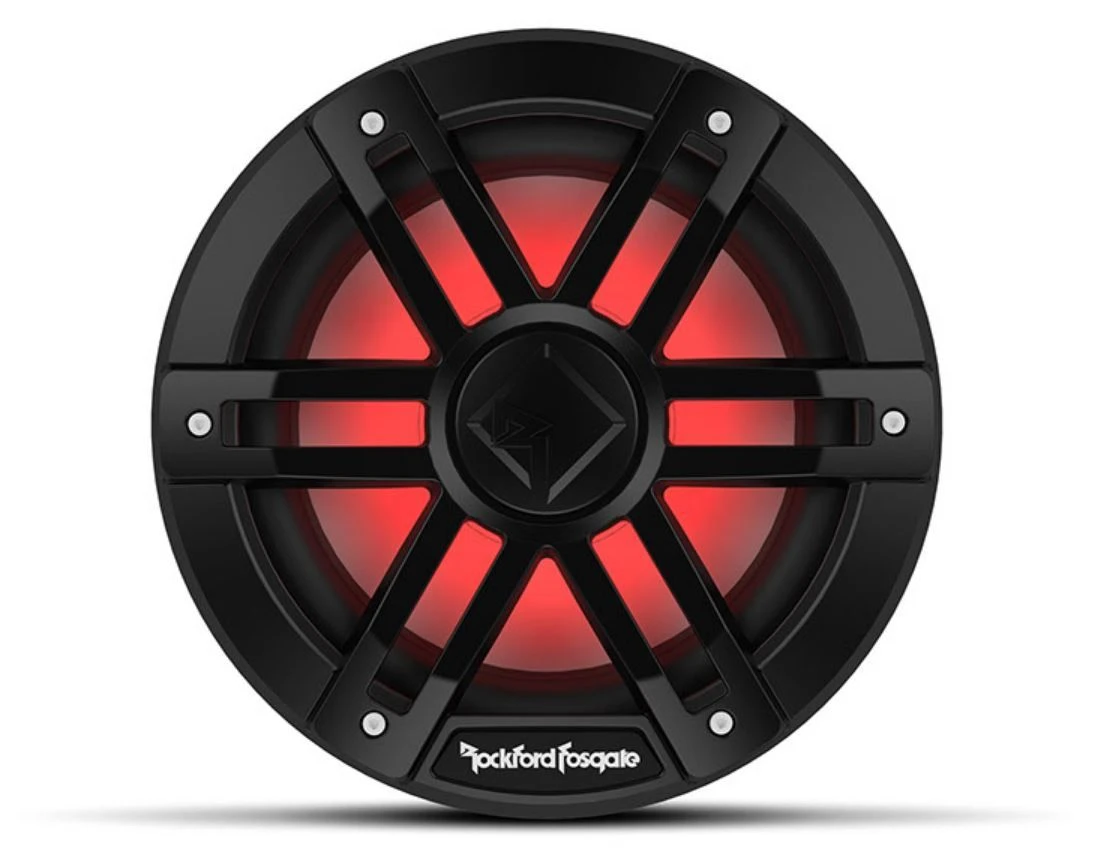 Die Rockford Color Optix™ Subwoofer sind Element Ready™ als auch IP67 zertifiziert, d.h. perfekt für Marine- und Outdoor-Einsatz geeignet. Die Modelle M1 und M2 sind mit einer speziellen LED Membran-Beleuchtung ausgestattet, die in sieben verschiedenen RGB Farben einstellbar ist.