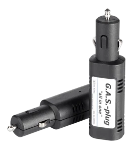 - G.A.S.-plug „all in one“ ist ein kompakter Gaswarner, der die Fahrzeuginsassen vor ausströmendem Propan- und Butangas warnt und auch Betäubungsgase in geringsten Mengen zuverlässig detektiert, lange bevor eine gefährliche Konzentration erreicht ist.